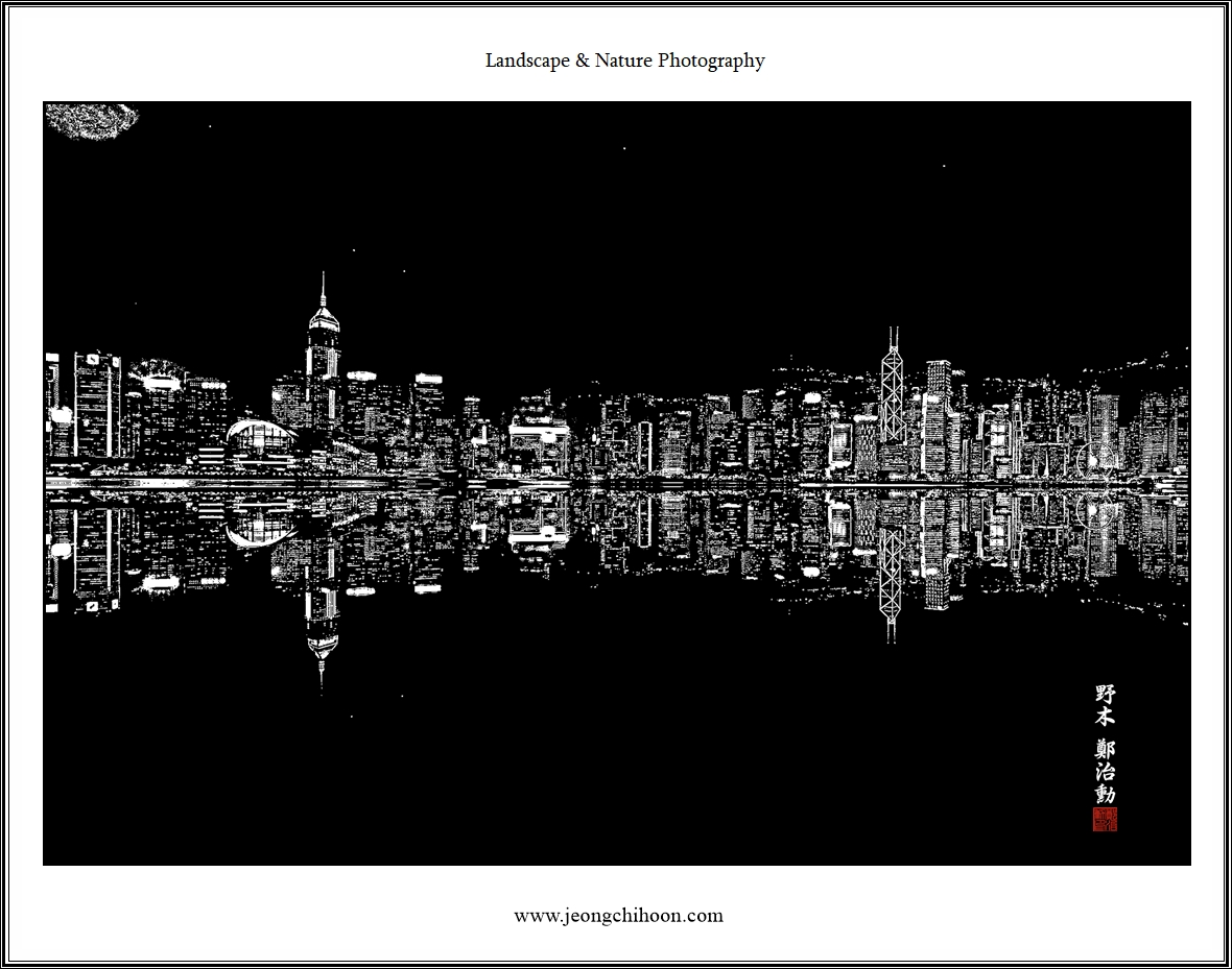 첫 사진 / 홍콩 침사추이 에서 바라본 빅토리아항 야경을 창조적 기법으로 흑백 판화 구성